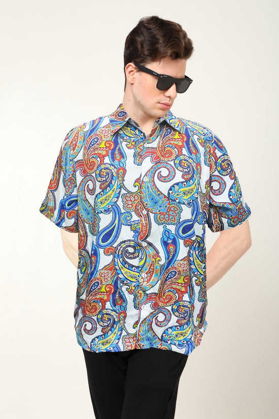 Modern Mens Multi Color Polyester Abstract Printed Shirt Regular Fit With Shirt Collar And Short Sleeves For Casual Daily Wear