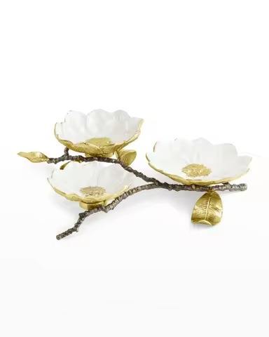 Modern Metal Decorative Bowl Set With Golden Stem Design Perfect For Dining And Living Room Decoration