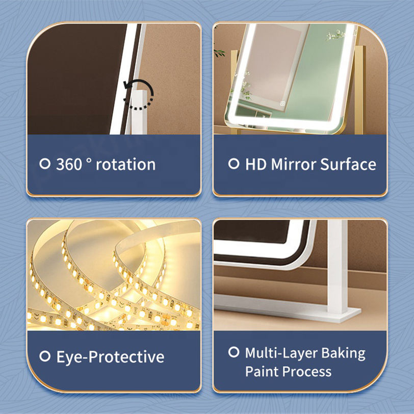 Modern Metal Frame 360 Degree Smart Touch Control LED Lights Desktop Vanity Makeup Cosmetic Mirror
