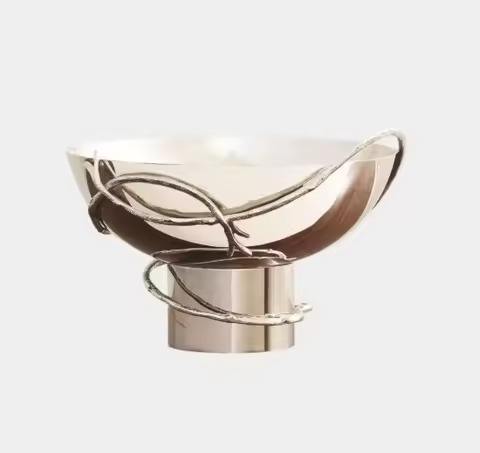 Modern Metal Fruit Bowl Curved Design Silver Serving Bowl With Metal Decorative Bowl