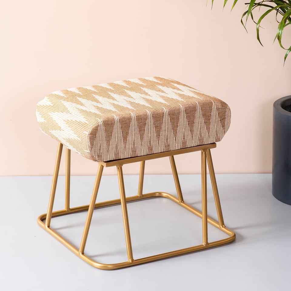 Modern Metal Handicrafts Ottoman Stool with Velvet Seat for Home Office or Living Room Entry & Bedroom Use