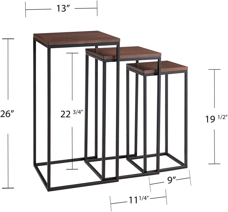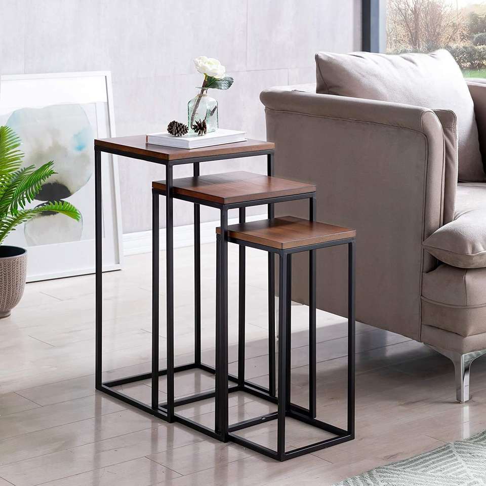 Square Wooden Top Side Table with Iron Frame Set Of 3