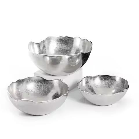 Modern Metal Serving Date Bowl Best Design Fruit Bowl for Parties Serving Chocolate Fruits Serving Use in Set of 3 Silver Color