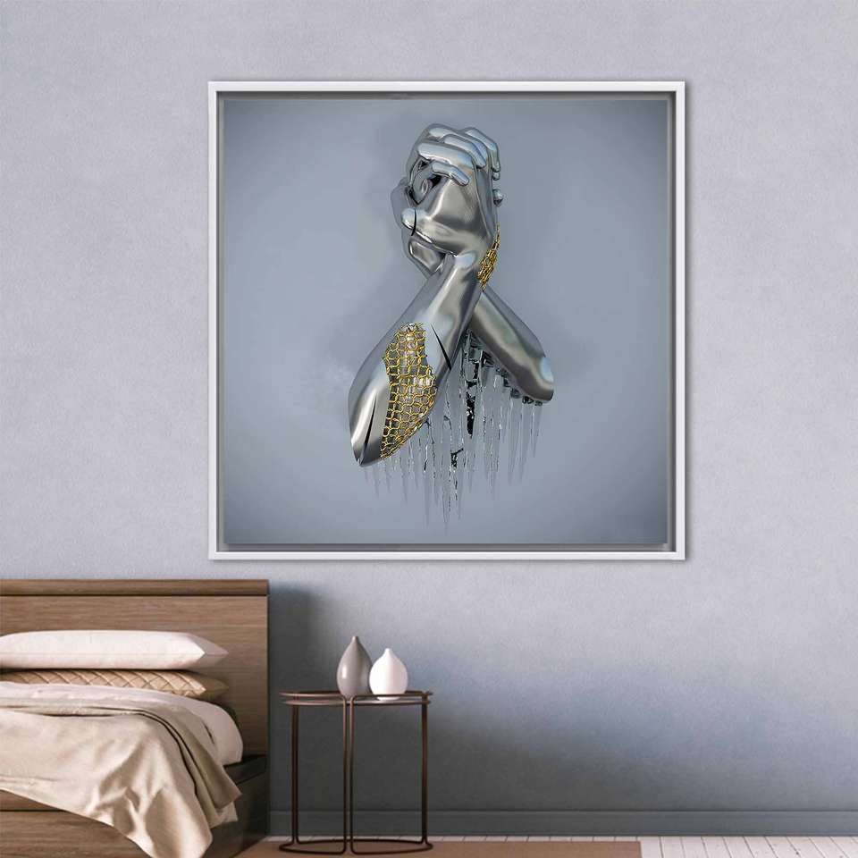 Modern Metallic Hand Art Canvas - Sleek, Trendy, Printed Wall Decor,White Framed