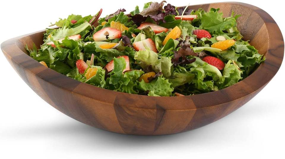 Modern Mid Century 11\" Diameter 4\" Tall Acacia Wood Salad Serving Bowl for Fruit Salads and Tabletop Decor