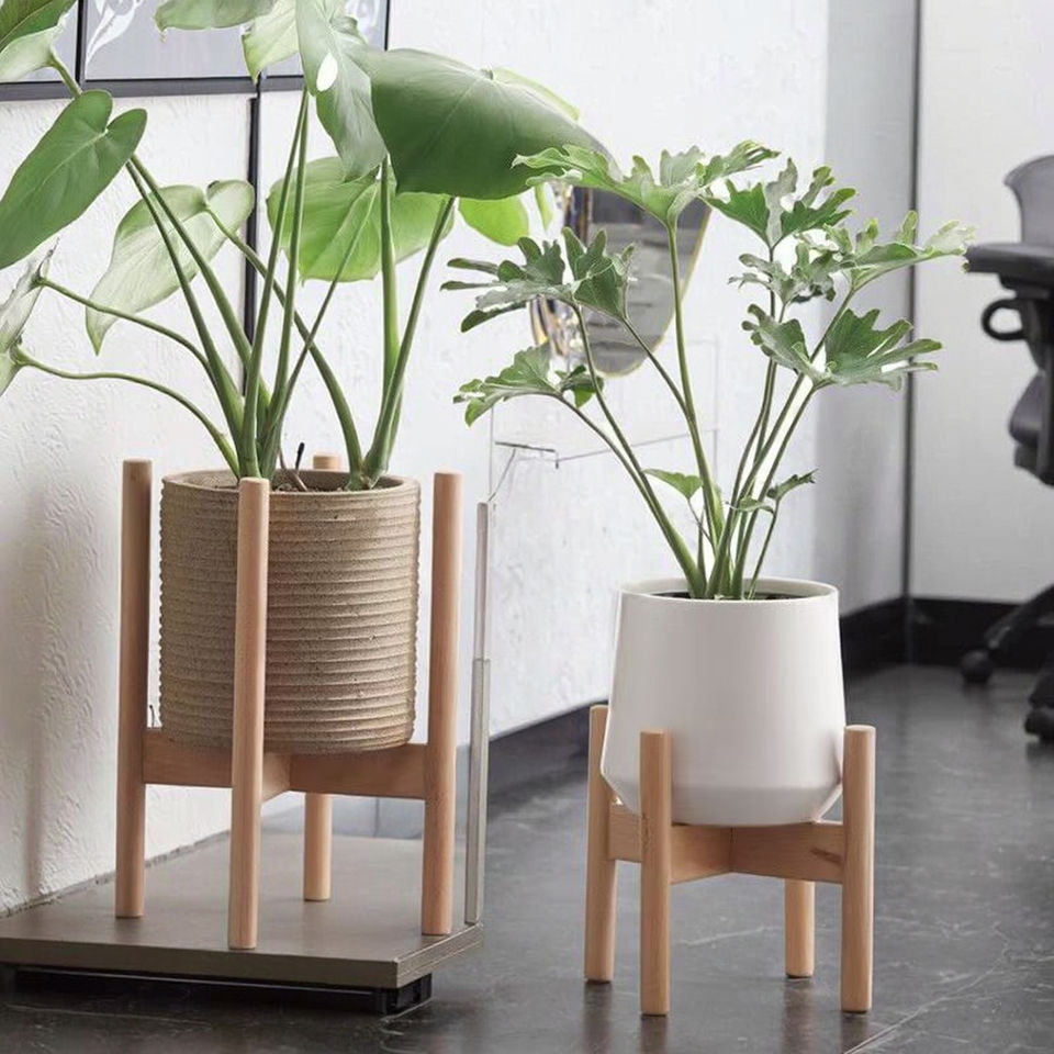Adjustable Plant Stand Wood Modern Flower Potted Holder Rack