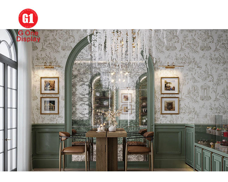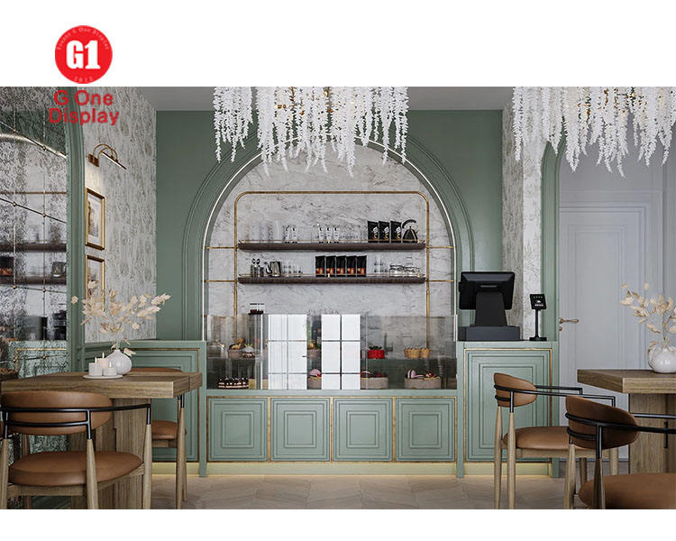 Modern Custom Coffee Shop Bar Counter & Showcase with LED Lighting Eco-Friendly Wooden Design for Retail Display