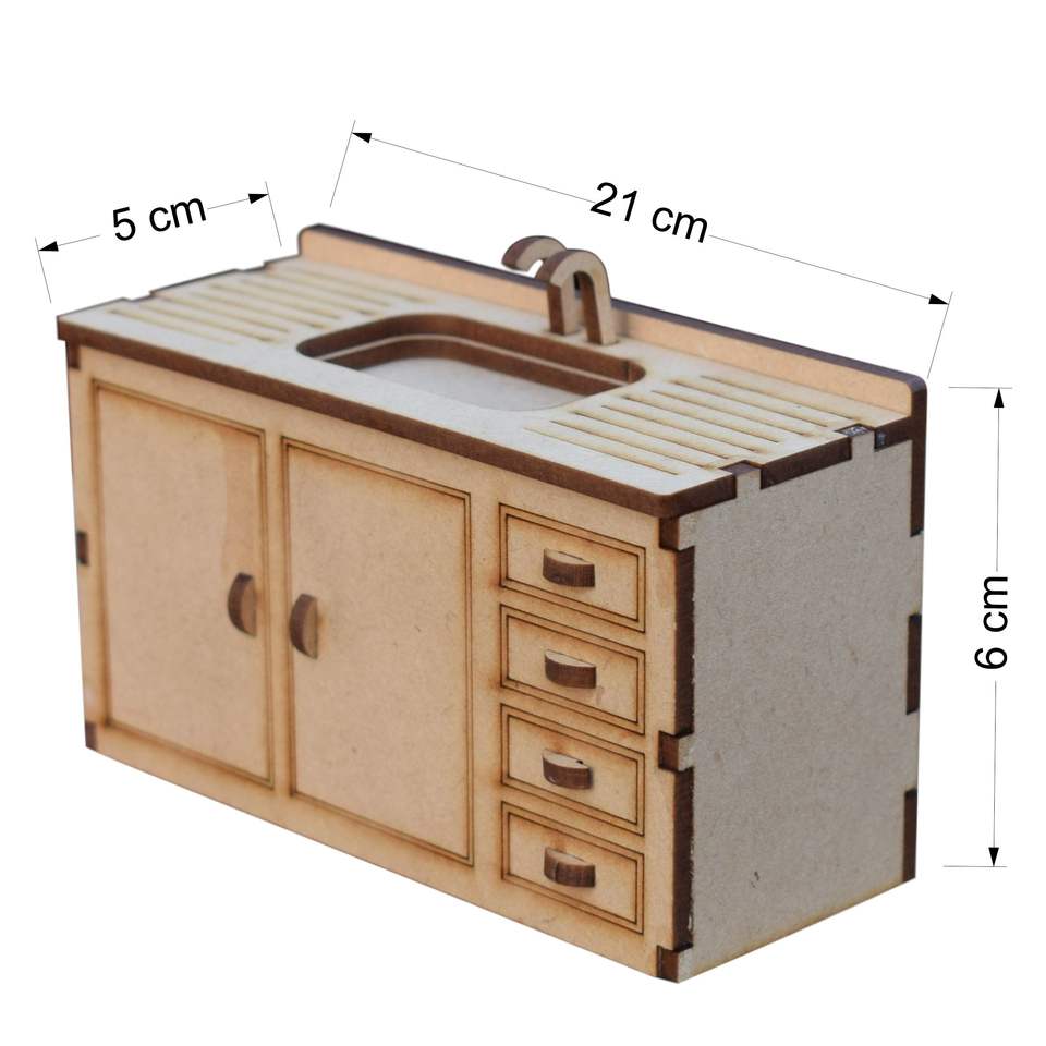 Modern Miniature Kitchen Vanity Laser Cut Wood Basin Set Mini Toy Children's Model Kitchen Sink Bathroom Furniture Dolls House
