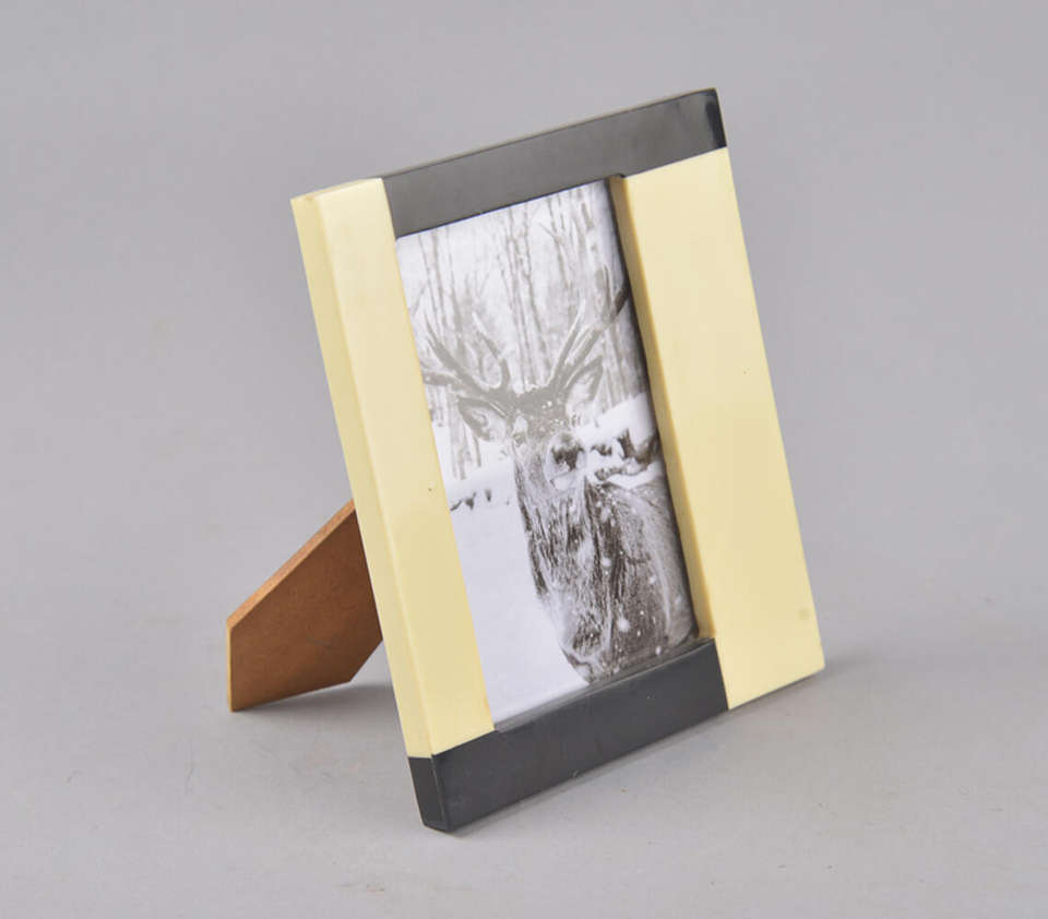 Modern Minimalist Black And Cream Resin Inlay Picture Frame Elegant Two Tone Block Design Photo Holder Decorative Desktop
