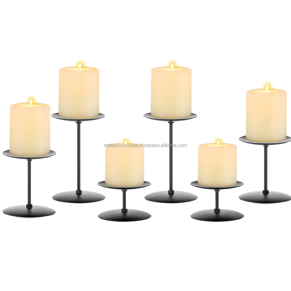 Modern Minimalist Black Metal piece Pillar Candle Holder Set Durable Handmade Matte Black Candlesticks for Home Bedside Decor