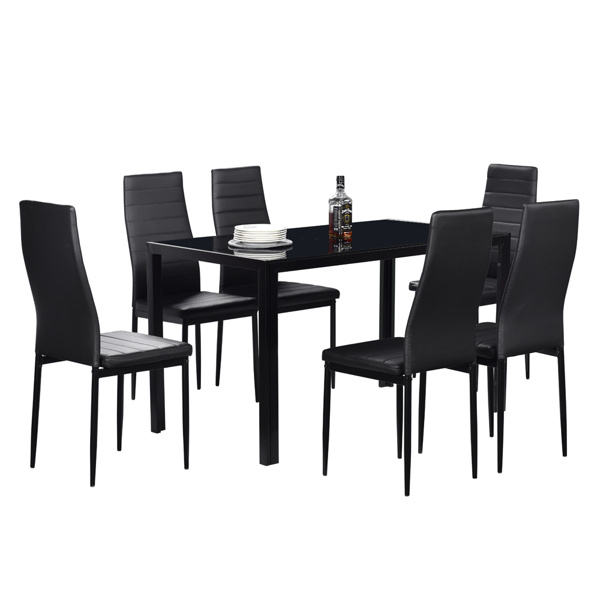 Modern Minimalist Black Tempered Glass & Iron Dining Table, Rectangle Design, Assembled, 4 Seater, Home Furniture, D0100HPDIVG