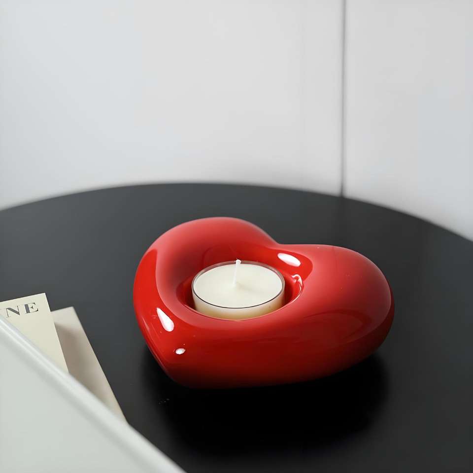 Heart-shaped ceramic candle holder