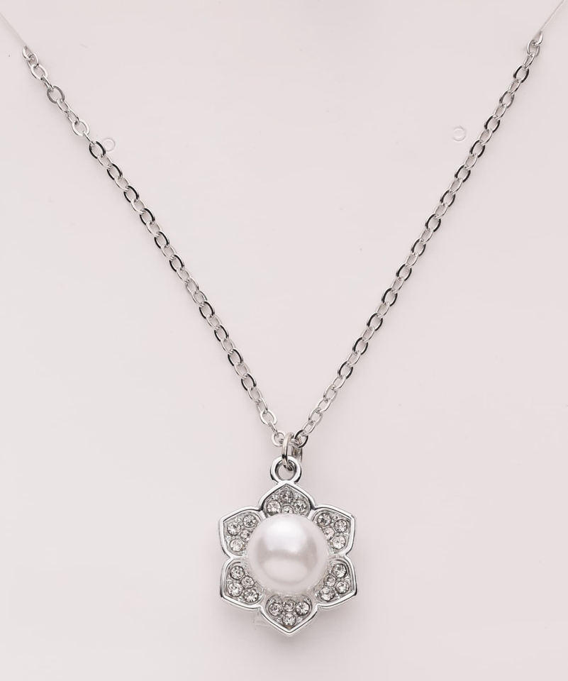 Modern Minimalist Floral Pendant Chain Silver Custom Jewelry with Pearl Diamond Gift for Women Girls Fashionable for Party Wear