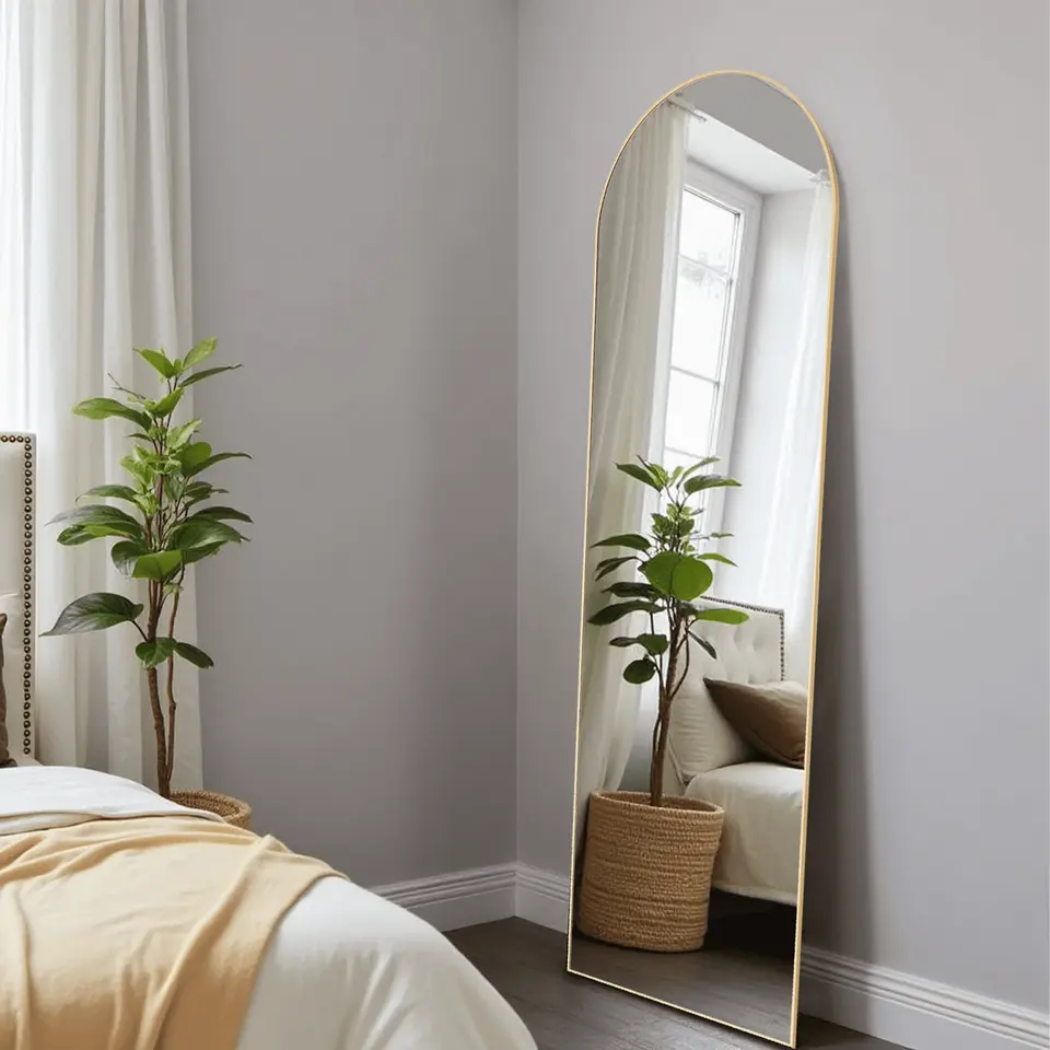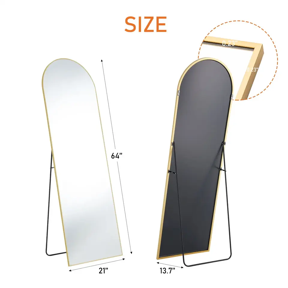 Modern Minimalist Full-Length Floor Mirror with Gold Aluminum Alloy Frame Standing Floor Mirror Full Body Mirror with Bracket
