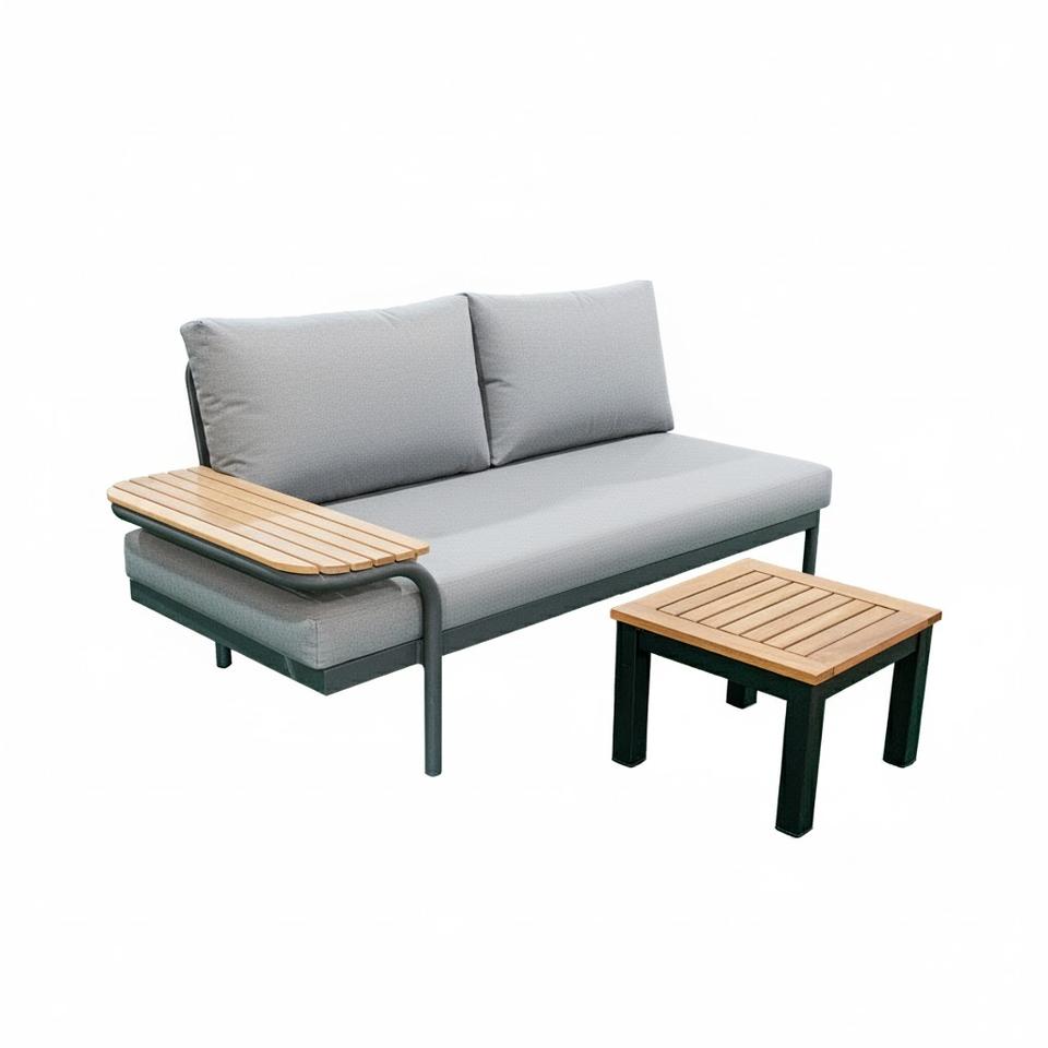 Modern Minimalist Gray Outdoor Garden Sofa Set Durable Acacia Frame Side Table for Patio Home Resort Use