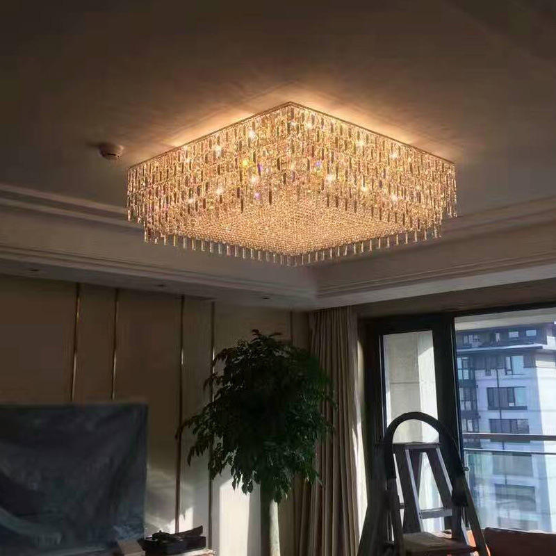 Modern Minimalist Luxury Crystal Ceiling Light K9 Large Square Fixture for Villa Living Room Master Bedroom Made in Zhongshan