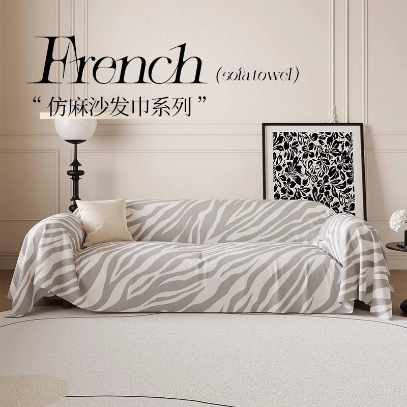 Modern Minimalist Sofa Cover Zebra Stripes Non Slip Full Coverage Flax Fabric Modular Sofa Slipcover