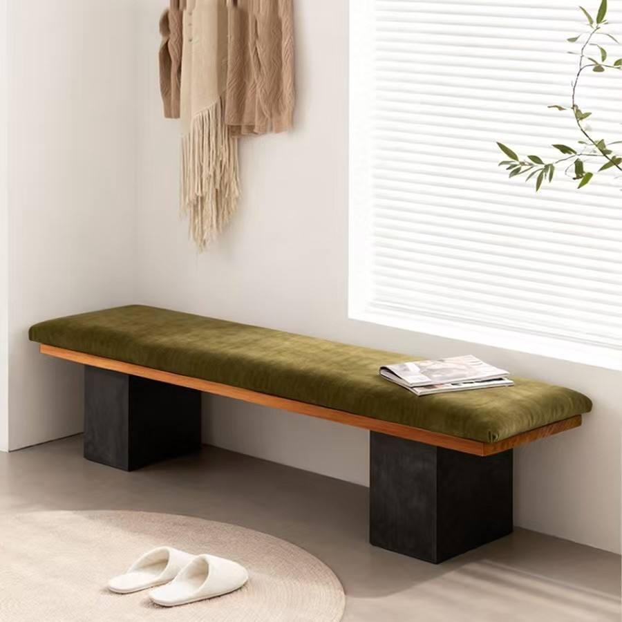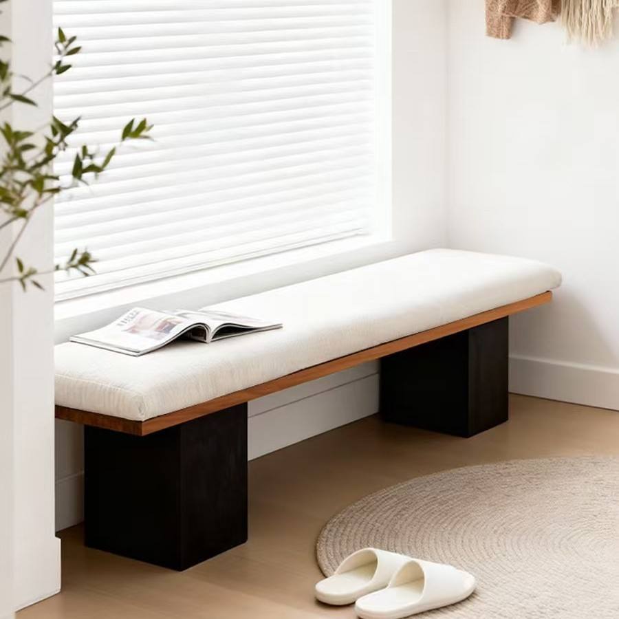 Modern Minimalist Solid Wood Bench With Tufted Fabric Seat For Living Room Bedroom Entryway And Shoe Changing Bench