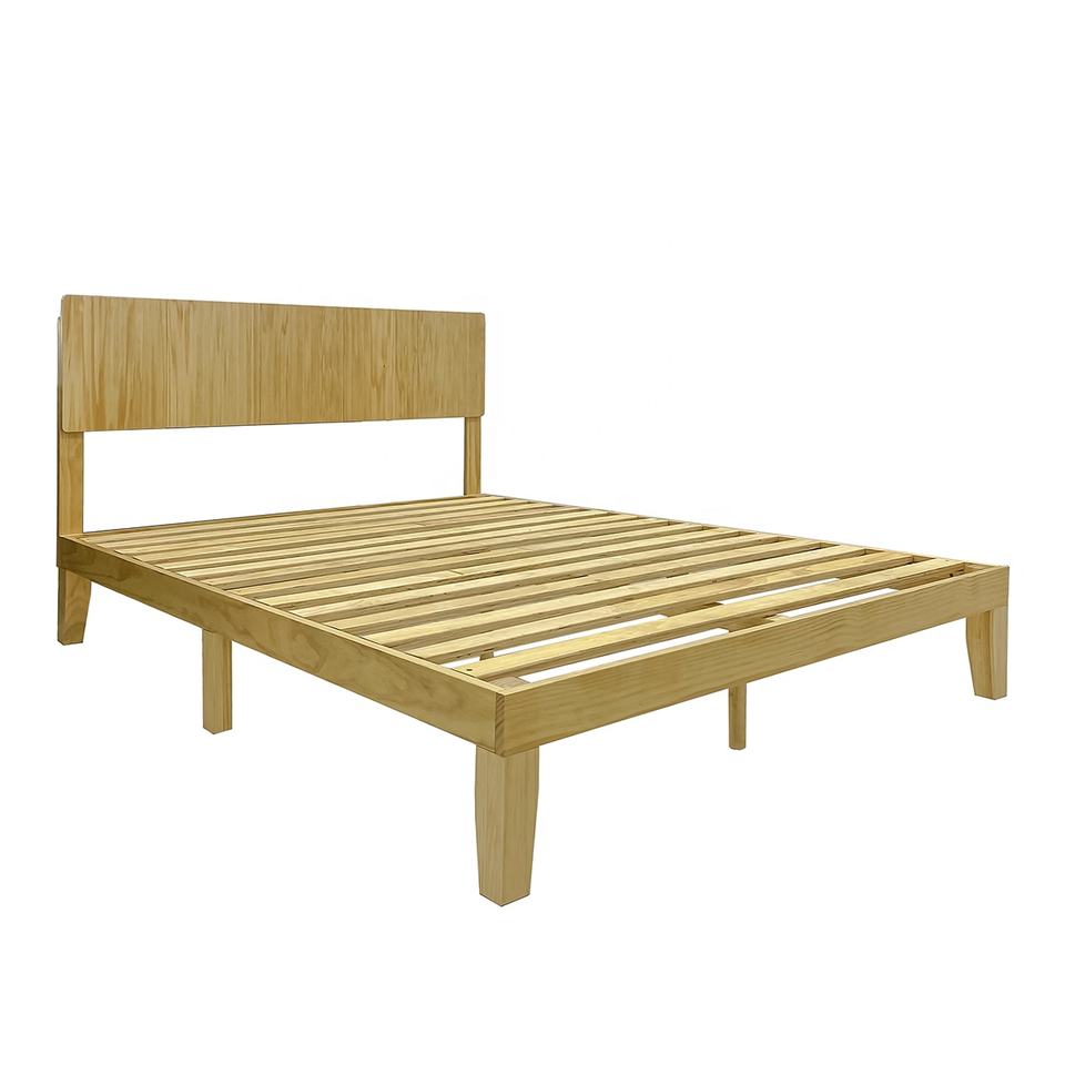OEM/ODM Reseller Minimalist Solid Pine Wood Queen Size Bed Frame with Fluted Wooden Headboards Wooden Platform Bed Vietnam-Made