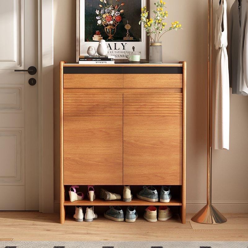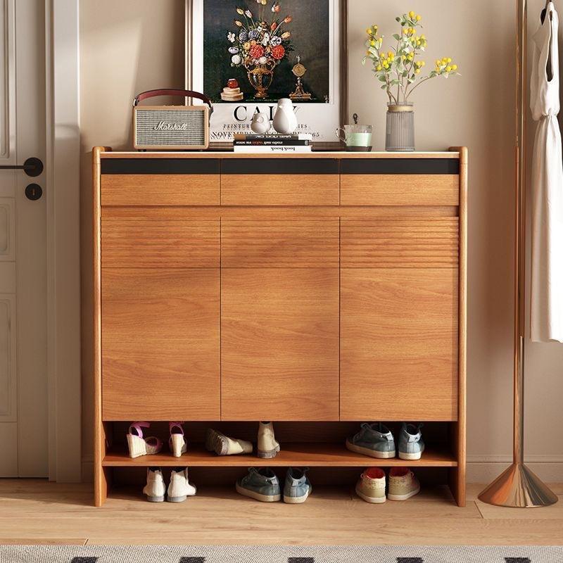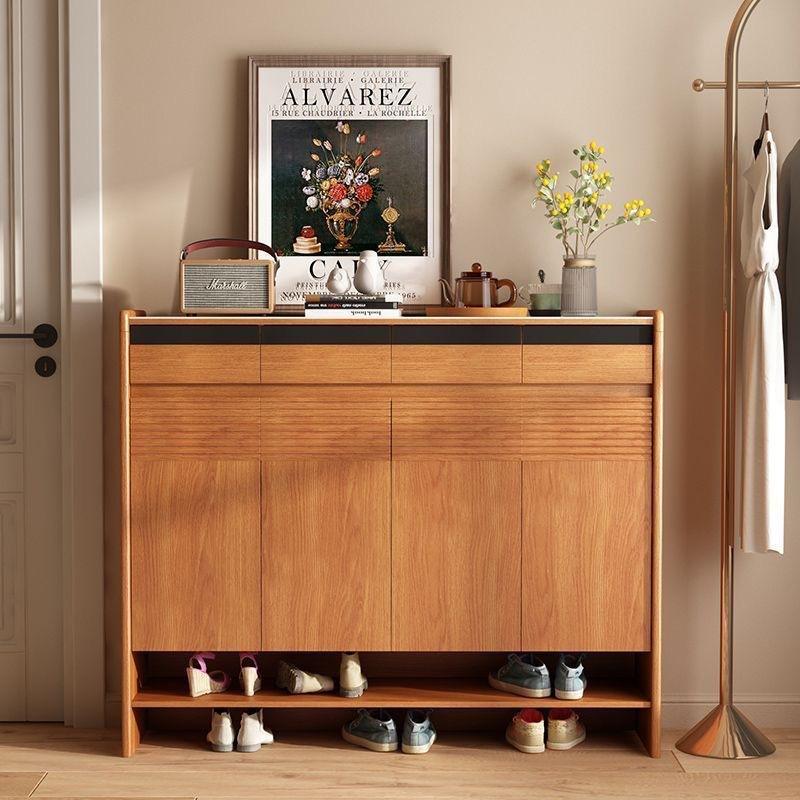 Modern Minimalist Solid Wood Shoe Cabinet Space Saving Entryway Storage Rack For Small Apartments