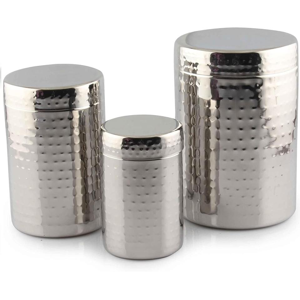 Modern Minimalist Stainless Steel Hammered Storage Jar Set Silver Cylindrical Containers for Kitchen Use