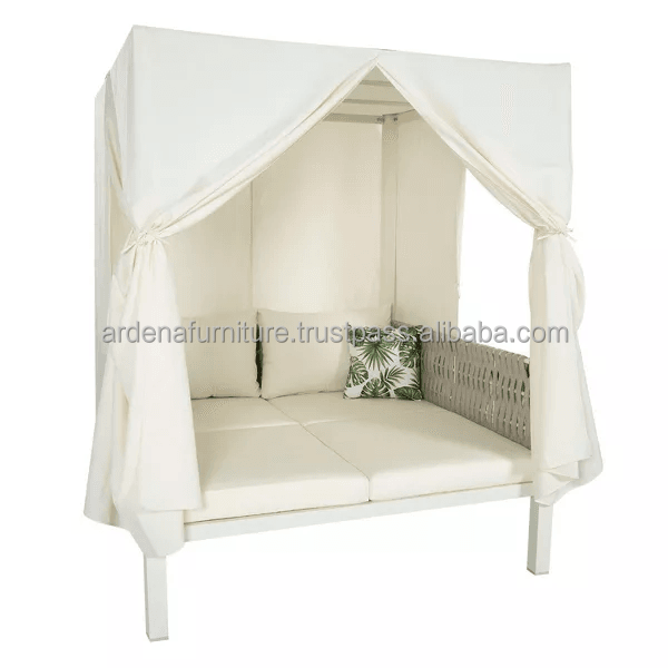 Modern Minimalist Teak Wood Outdoor Furniture Cabana Beds Sun Loungers Canopy for Poolside Bedroom Use for Hotels Made Indonesia