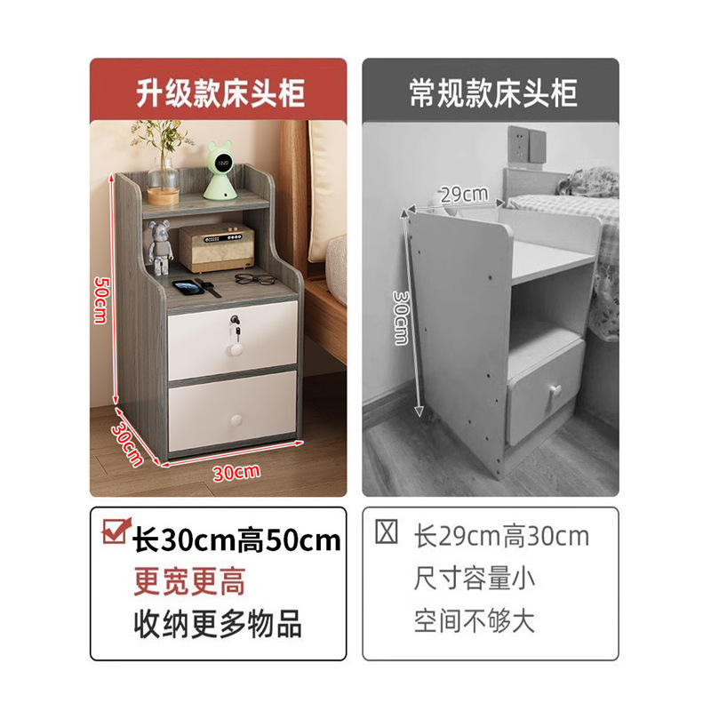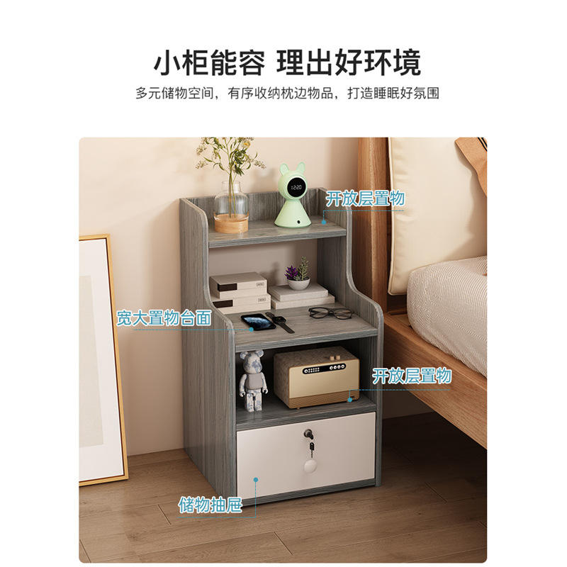 Modern Minimalist Wooden Nightstand With Lock And Storage Drawers For Bedroom Child Use