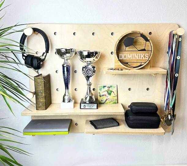 Modern Minimalist Wooden Pegboard Organizer for Classic Toys Display Wall Control Plywood for Children's Room Classic Toys