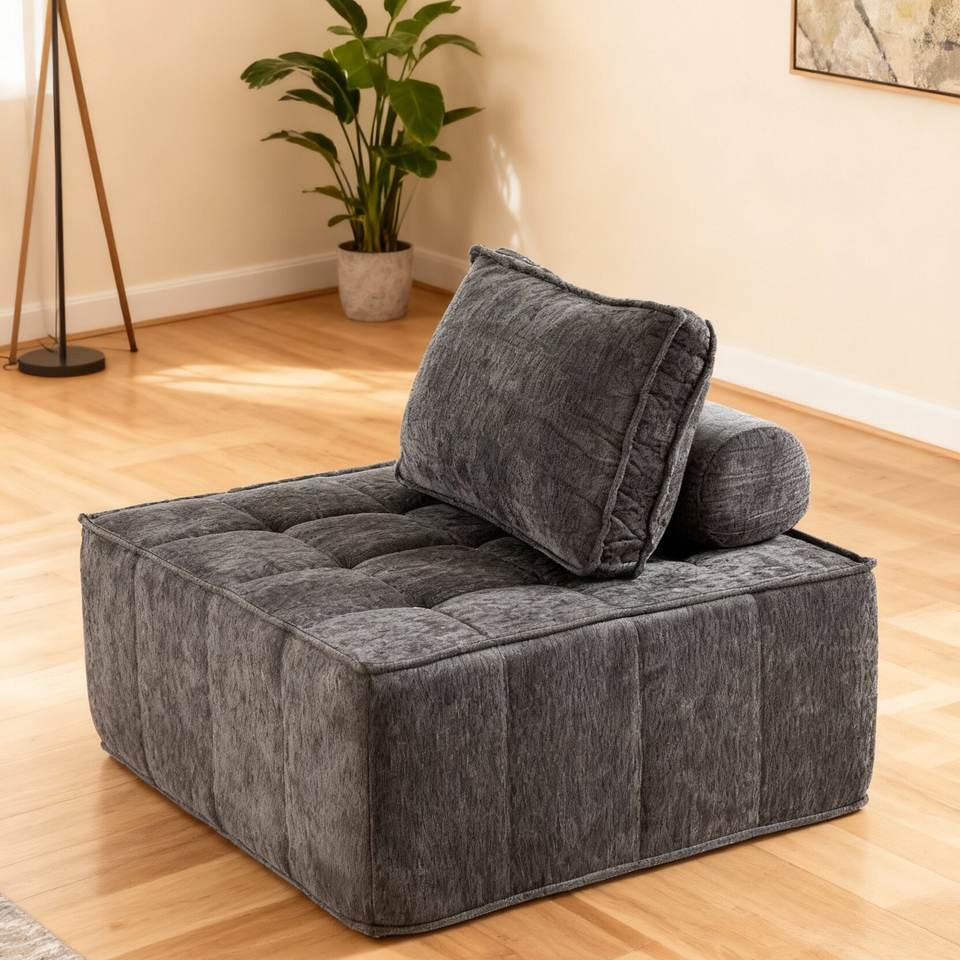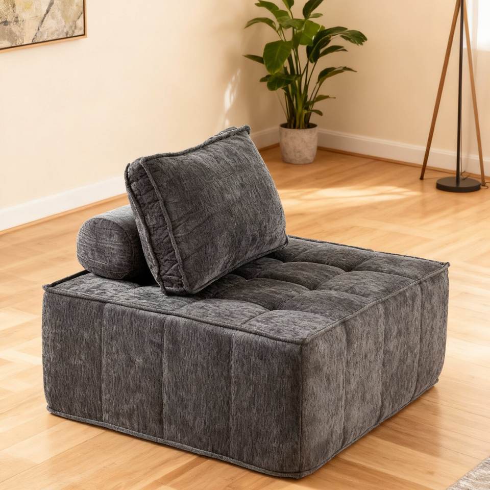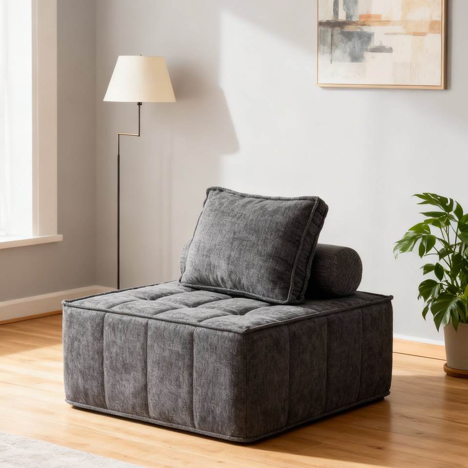 Modern Modular Sectional Single Sofa Armless Floor Sofa Removable Back Cushion Corduroy Swivel OE HOME Living Room Furniture
