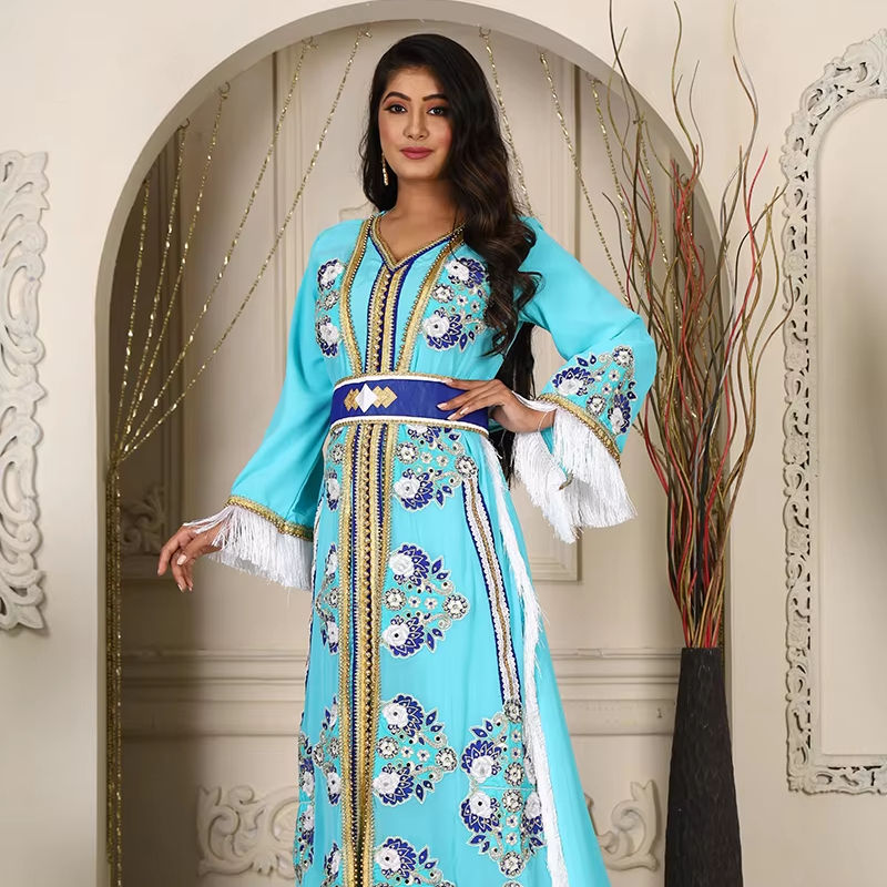 Modern Moroccan Islamic Kaftan for Women Long Floor-Length Beach Dress with Breathyable Long Sleeve ODM Supply