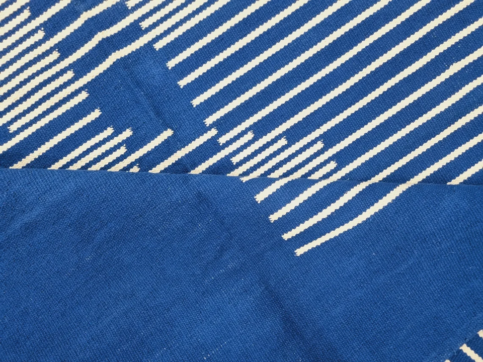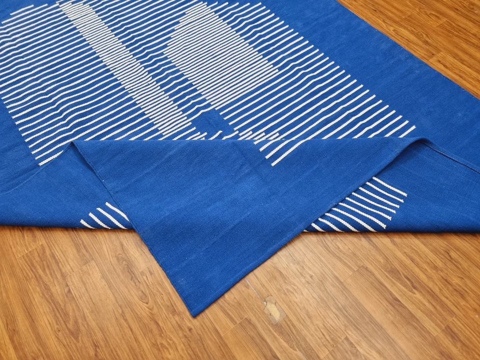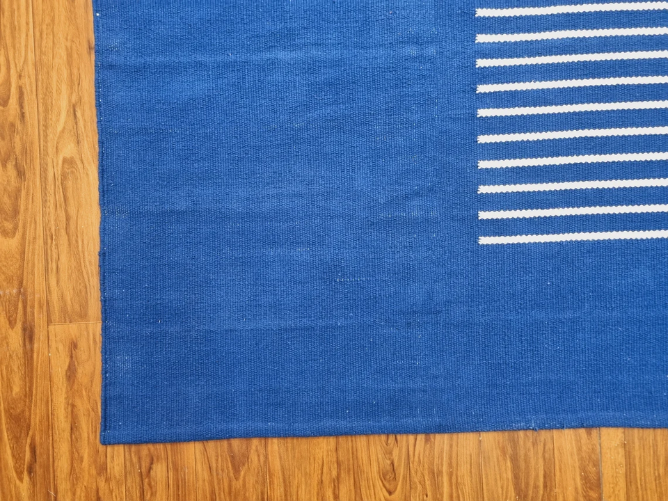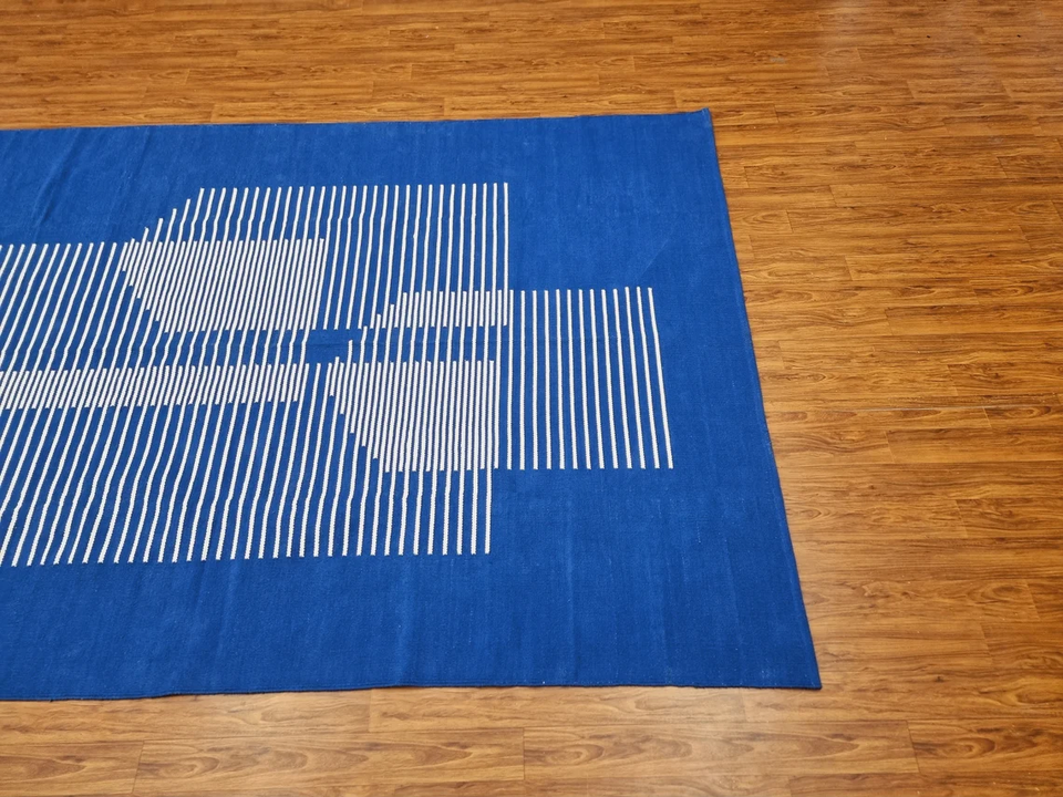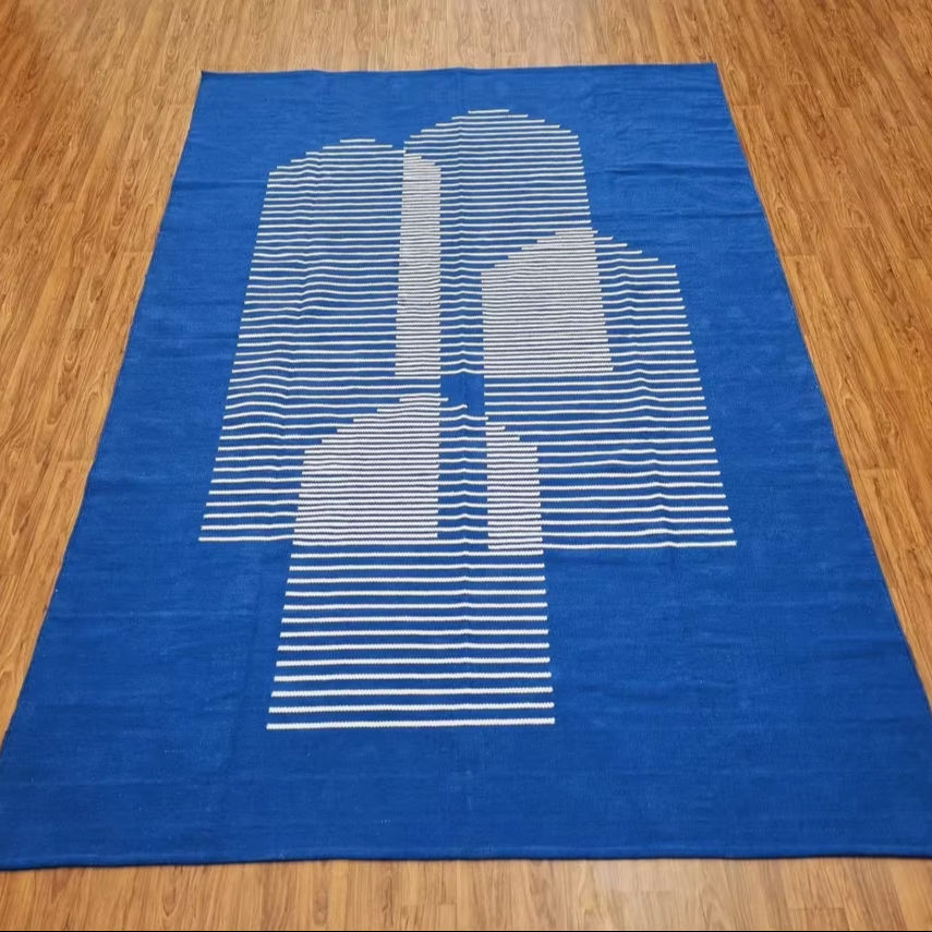 Modern Moroccan Style Wool Kilim Blue Rug Handwoven and Tufted Washable Cotton Home Decor for Living Room