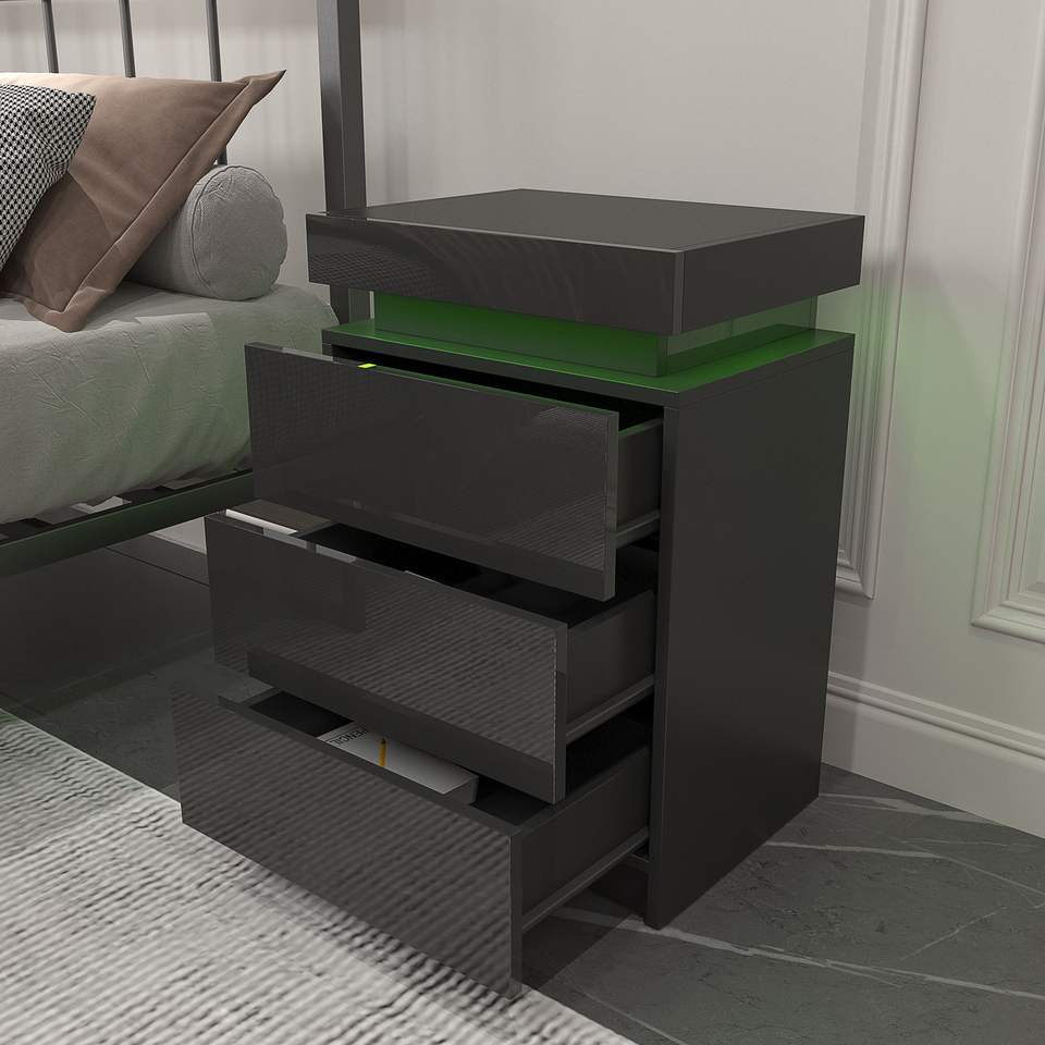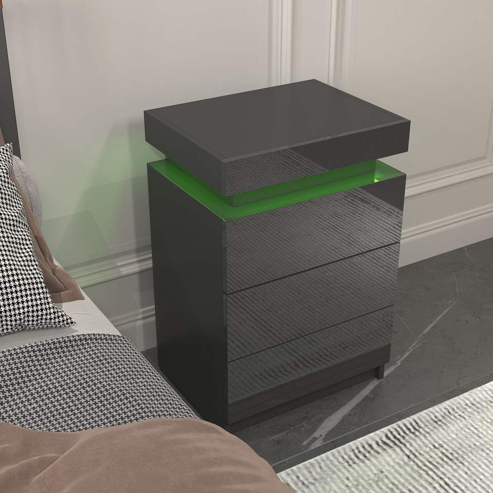 Modern Multi-Colour LED Bedside Table Black Nightstand for Bedroom or Living Room