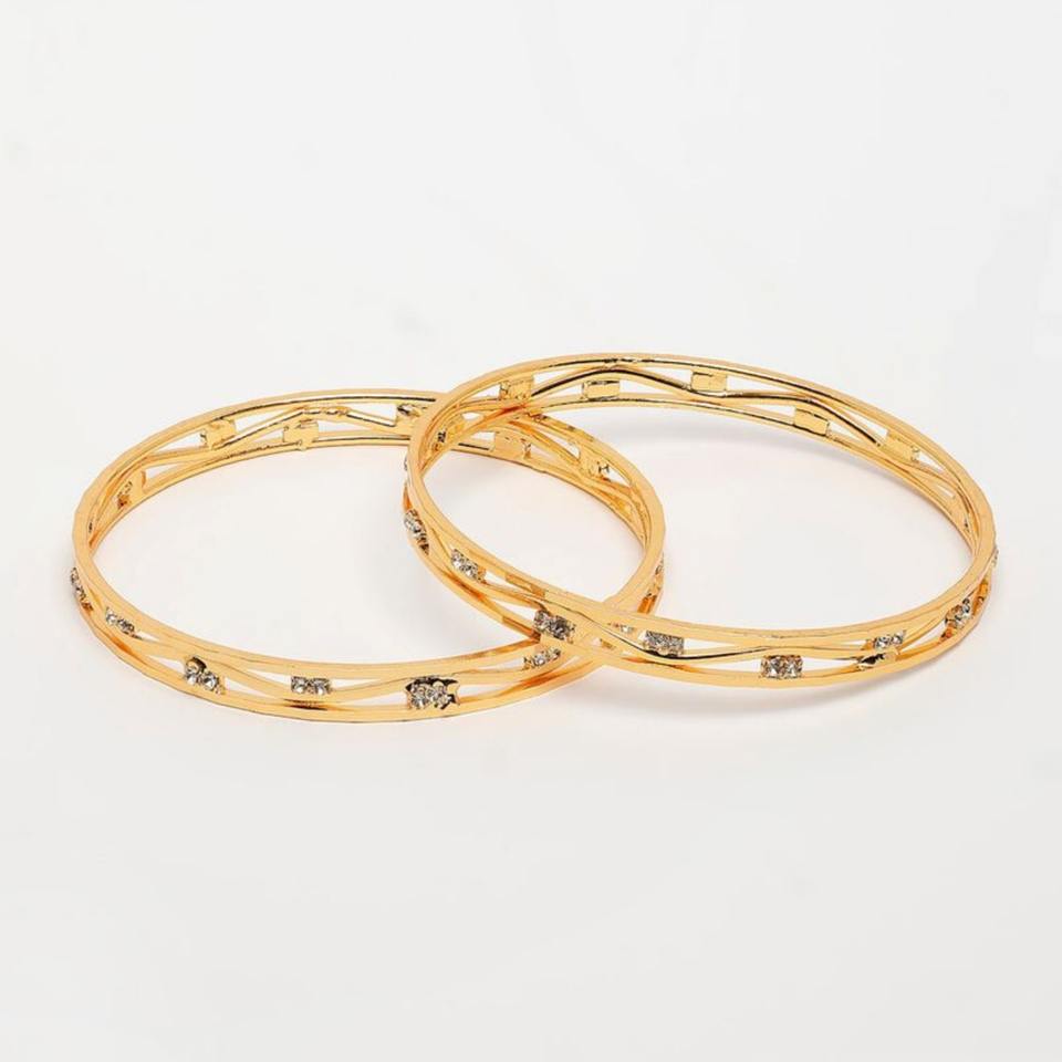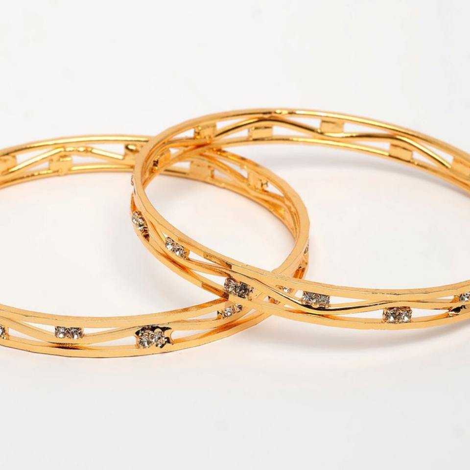 Modern Multi Line Stone Embedded Gold Finish Metal Craft Bangles Set Luxury Designer Bracelet Jewelry for Women