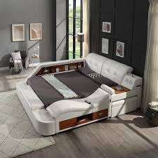 Modern Multifunctional Smart Leather Double Bed Light Luxury Intelligent Projector Storage Massage Lighting 2 Places Living Room