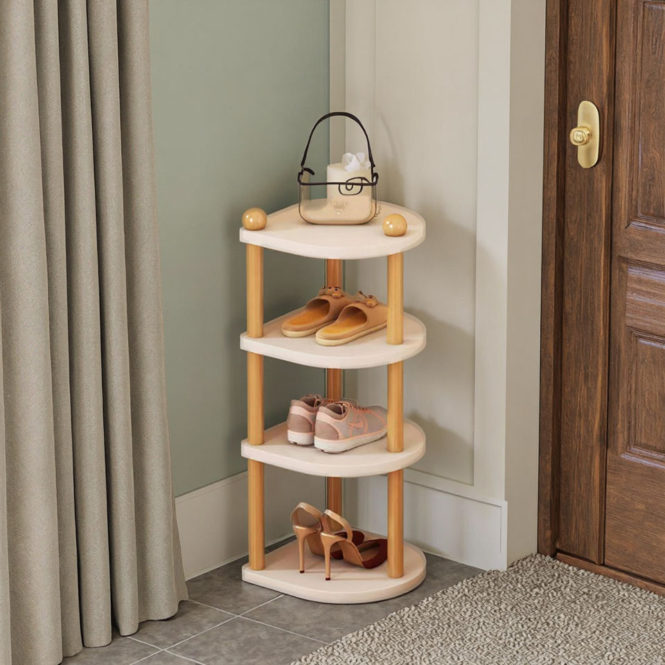 Modern Narrow Wooden Bamboo Panel Entrance Shoe Rack 4 Tier Large Capacity Storage Organizer for Home Living Room Office