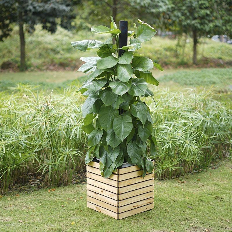 Modern Natural Color Square Wood Planter Box with Powder Coated Steel Frame for Indoor/Outdoor Home Garden Vegetables & Flowers