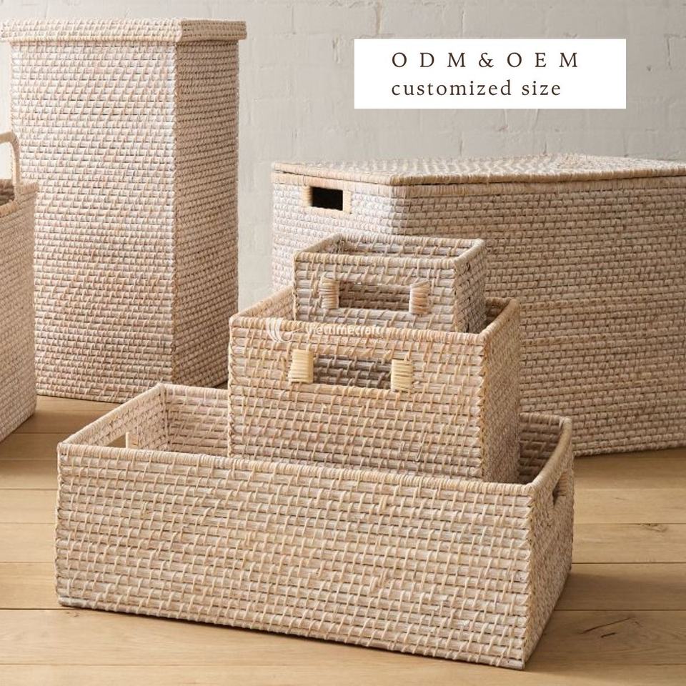 Natural Wicker Woven Storage Basket, Custom Decorative Wicker Baskets Organizers for Shelves and Home Decoration Vietnam