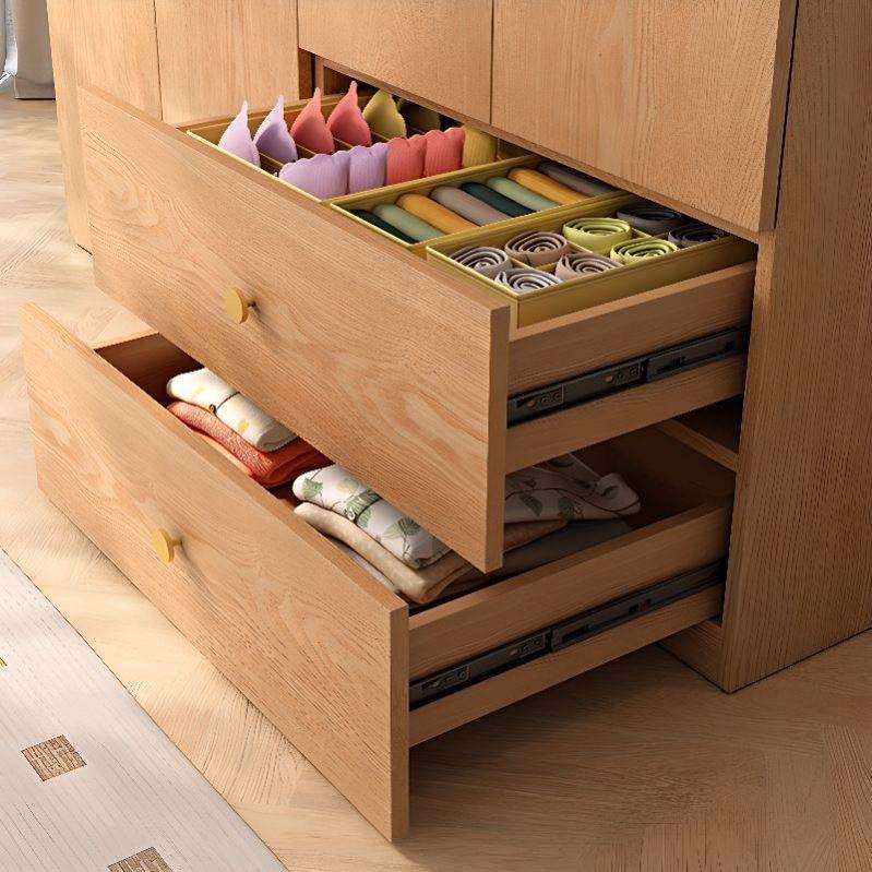 Modern Natural Simple Design Almirah 6 Door Oak Wooden Wardrobe Bedroom Furniture Suitable for Apartments