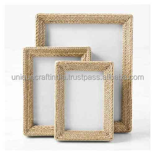 Modern Natural Style Rattan Wicker MDF Photo Frames High End Classical Wall Frames for Home Decor Wholesale