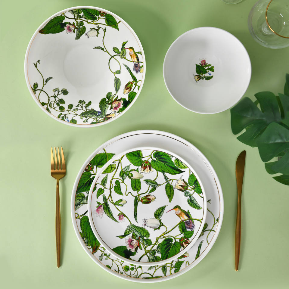 Modern Nature Fine Bone China Dinnerware Set Floral Design Porcelain Tableware Includes Cup Kit