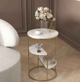 Modern Nesting Coffee Table Set 2 Piece Gold Metal Frame White Marble Top Round Side Tables For Living Room Luxury Furniture