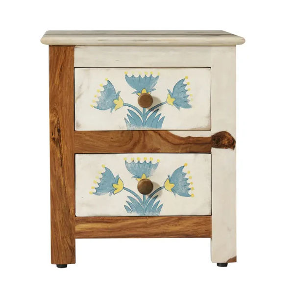 Modern New Design with flowers attractive look Wooden 2 Drawer Bedside Table Nightstand handicraft from indian market