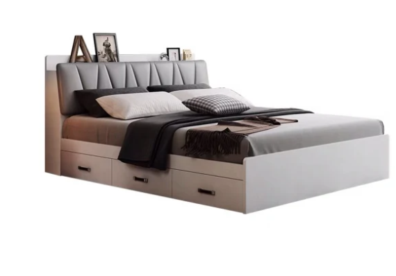 Modern New Designer Luxury Furniture Up-holstered Leather Beds 1.5m 1.8m 2m King Size Double Bed With Solid Wooden Storage Frame