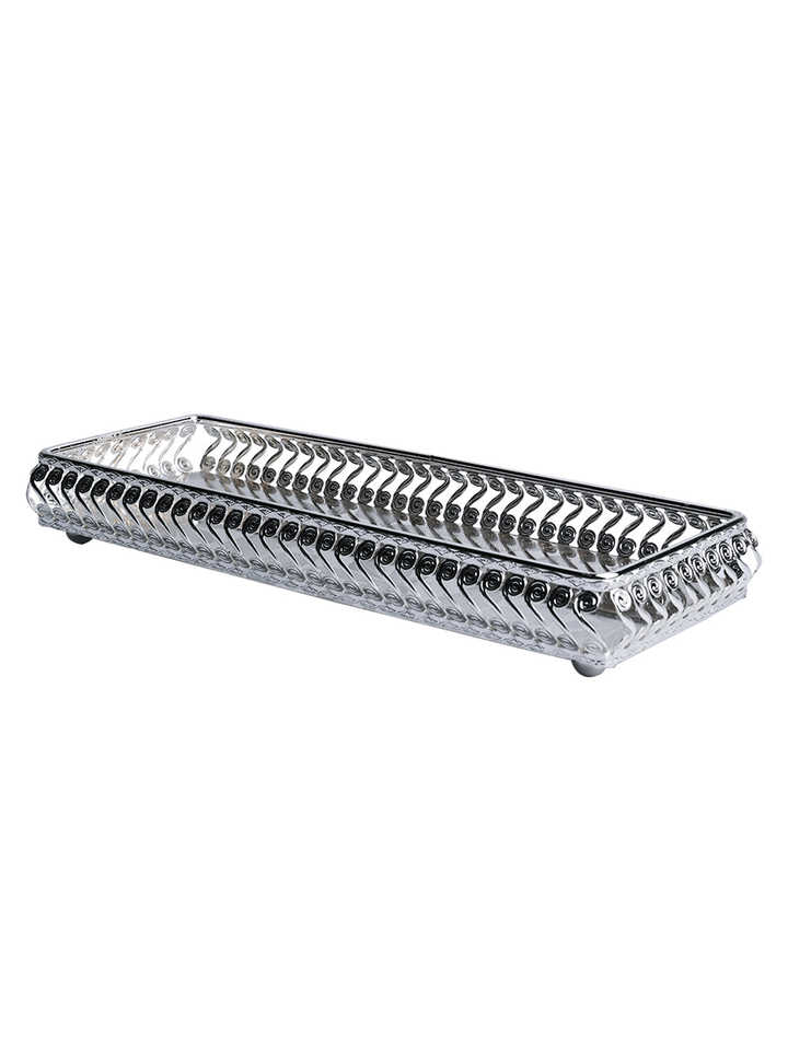 Modern Nickel-Plated Metal Rectangular Serving Tray Horizontal Multi-Functional for Home Hotel Restaurant Christmas Decor