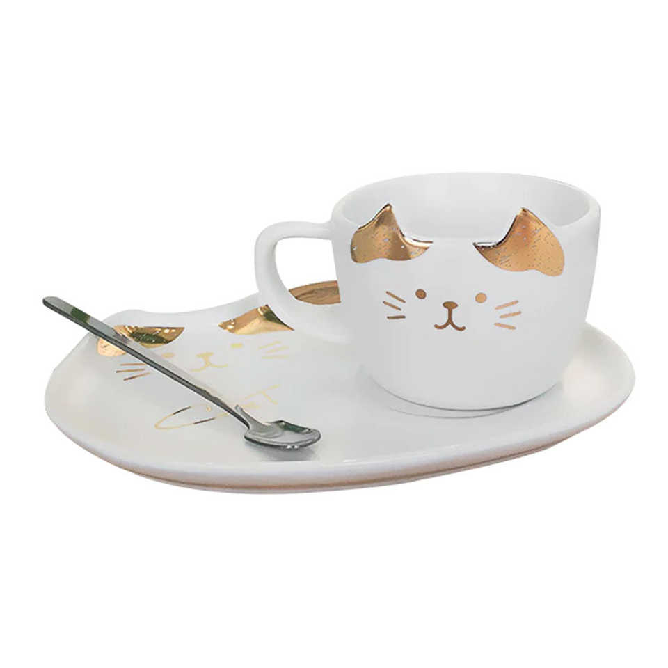 Modern Nordic Cat Design Ceramic Cup Set Spoon Plate Microwave Safe for Coffee Smoothies Promotional Gifts Use Coffee Shops