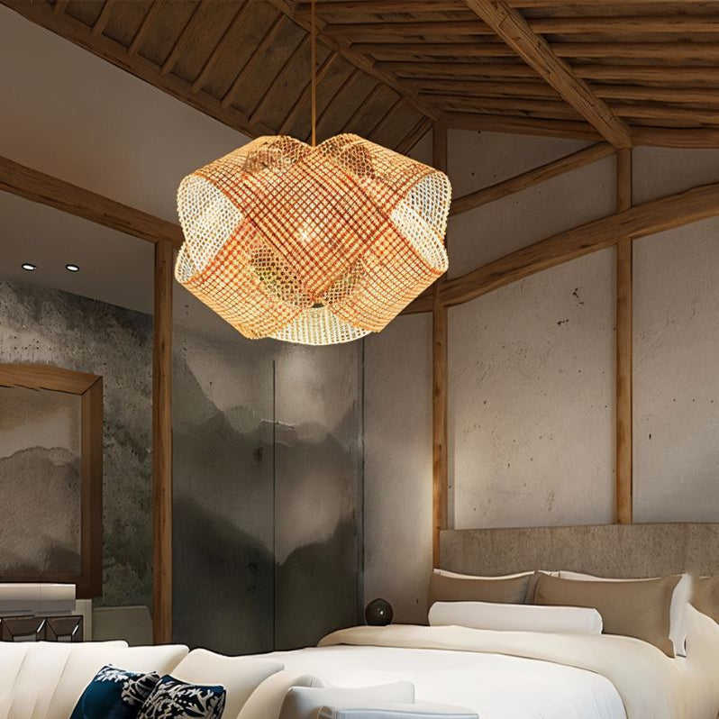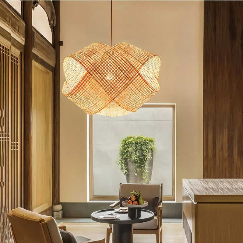 Modern Nordic Design Creative Bamboo Rattan Chandelier Iron Art Pendant Lamp Home Hotel Restaurant Staircase Home Indoor Light