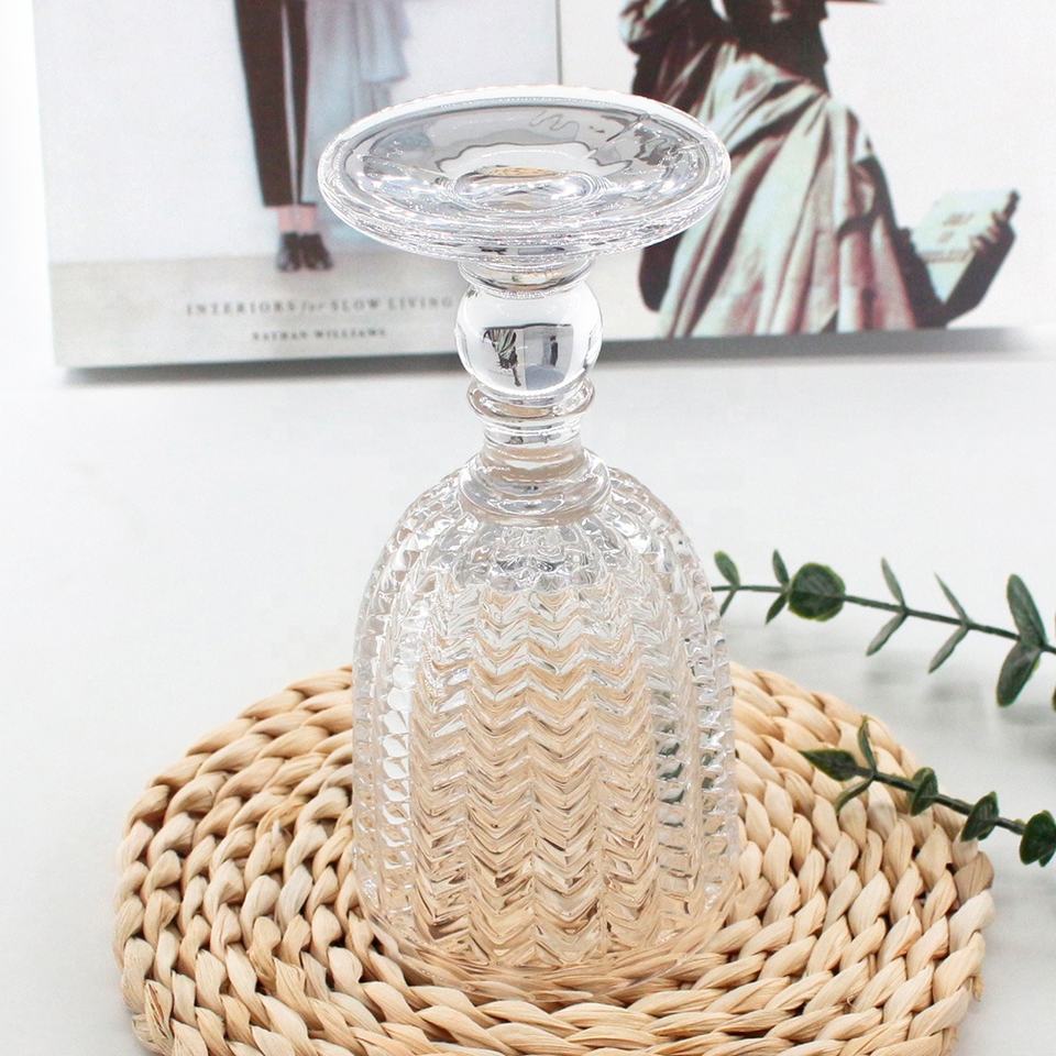 Modern Nordic Goblet Wine and Juice Glass Transparent Embossed Whiskey Glass Decorated with Color Drinkware Cups