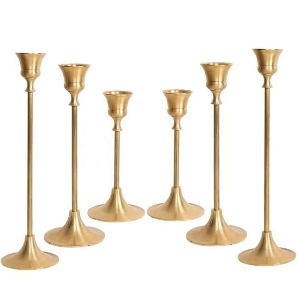 Golden Pillars Brass Candlestick Stand Wedding Valentines Day Decorative Candle Holders Set of 3 Luxury Pieces Hot Selling
