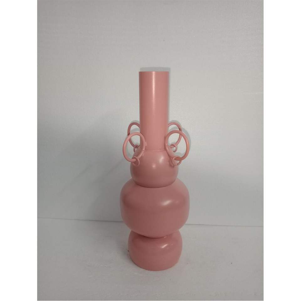 Modern Nordic Pink Metal Flower Vase with Chain Handles Decorative Iron Tabletop Vase Luxury Home Decor & Wedding Centerpieces