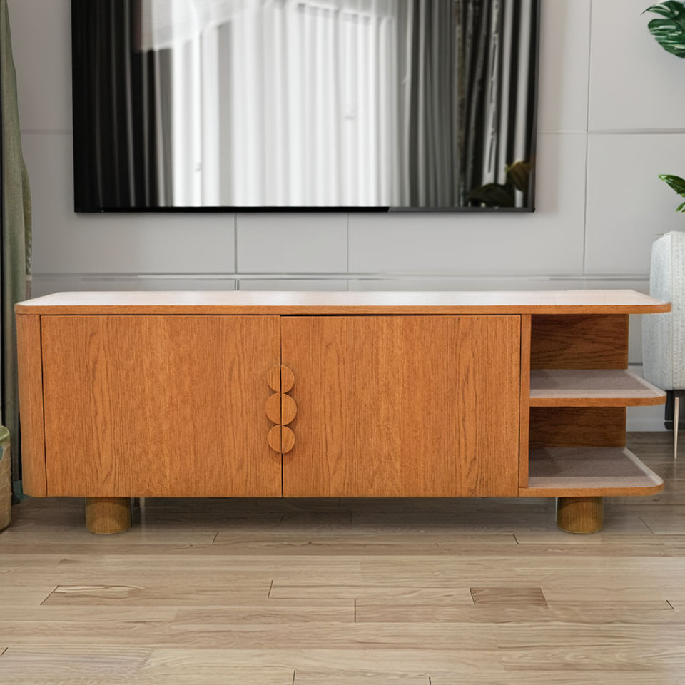 Modern OEM Dark Brown Pine Wood TV Stand with Unique Handles Open Shelf Home Furniture with Vietnam Design for Living Room